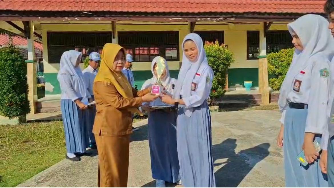 Momen penyerahan penghargaan ini disaksikan langsung oleh seluruh siswa, guru, dan tenaga kependidikan yang hadir dalam upacara. Suasana penuh haru dan bangga menyelimuti lapangan sekolah saat ketiga siswa maju kedepan untuk menerima piagam penghargaan dan ucapan selamat dari Kepala Sekolah.